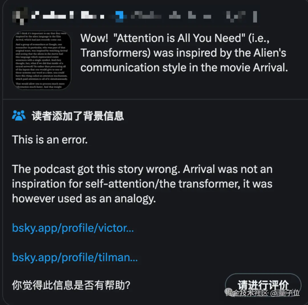 Karpathy 之所以现在提起这段往事,是因为最近社区中流传着一些误解,认为 Transformer 作者受到科幻电影《降临》中外星人交流方式的启发。
