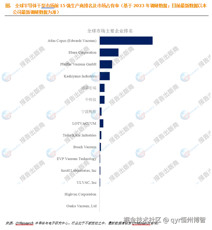 根据QYResearch头部企业研究中心调研,全球范围内半导体干泵生产商主要包括Atlas Copco (Edwards Vacuum)、Ebara Corporation、Pfeiffer Vacuum GmbH、Kashiyama Industries、通嘉宏瑞、中科仪、宁波鲍斯、LOTVACUUM、Taiko Kikai Industries、Busch Vacuum等。2023年,全球前五大厂商占有大约78.0%的市场份额。