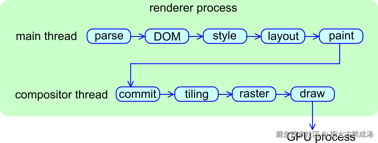 There is a long journey from when an HTML file is delivered to Blink to when pixels are displayed on the screen. The rendering pipeline is architectured as follows.