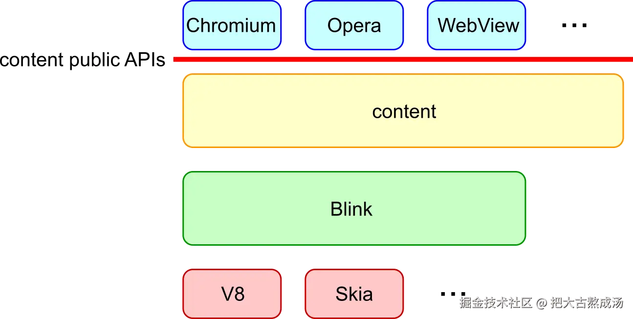 Blink is embedded by many customers such as Chromium, Android WebView and Opera via content public APIs.