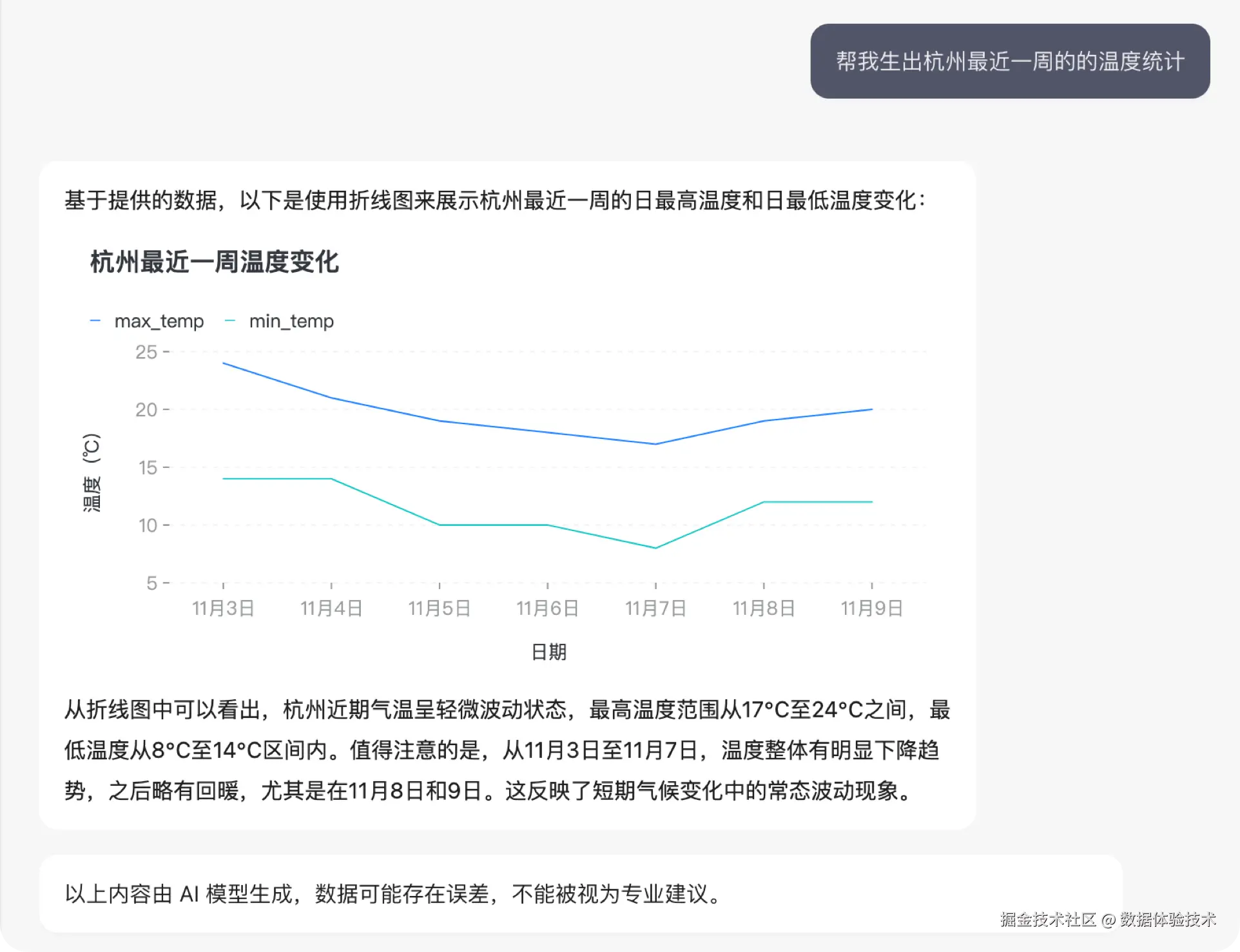在大语言模型时代,随之涌现的对话式 Copilot 产品应用如雨后春笋般涌现。然而,很多 AI 助手所提供的反馈大多局限于纯文本形式。为了提升用户体验,希望 Agent 返回的信息能够以更直观的方式展示出来。例如,当用户询问未来一周温度状况时,如果 Agent 以直观的图表形式展示数据,那将极大地提升用户体验。