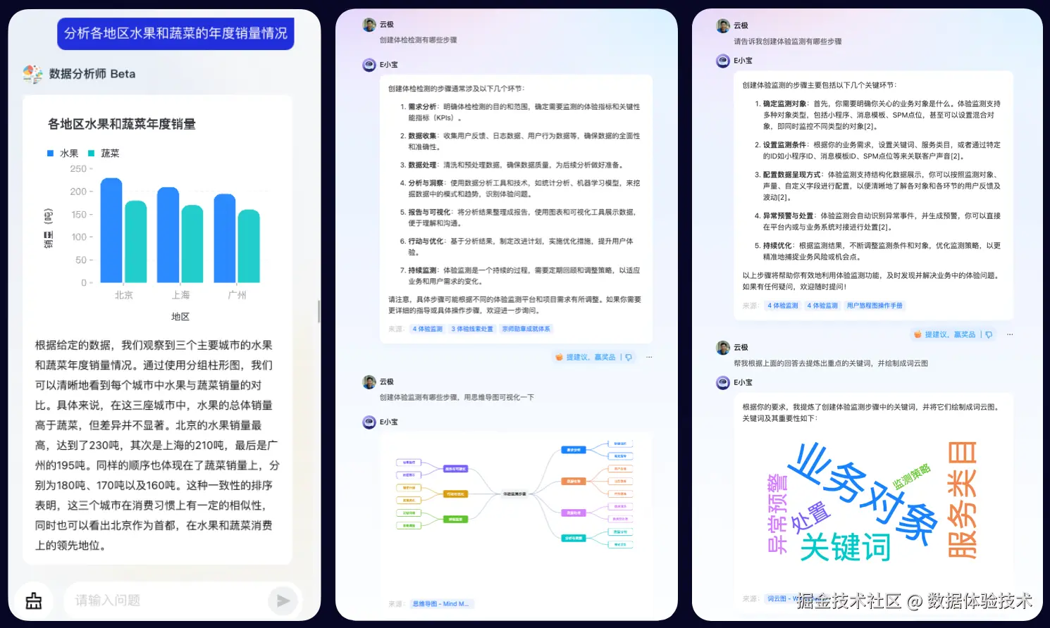 该协议基于 MD 语法扩展了 AI 卡片输出,以便大模型能够直接输出场景,使模型更易于理解图表配置。我们定义了图表的数据结构,不再使用传统的图形语法,而是采用简单、简洁、易于理解的方式,使数据字段具有语意化特征。此外,协议满足多端的可视化资产的使用。