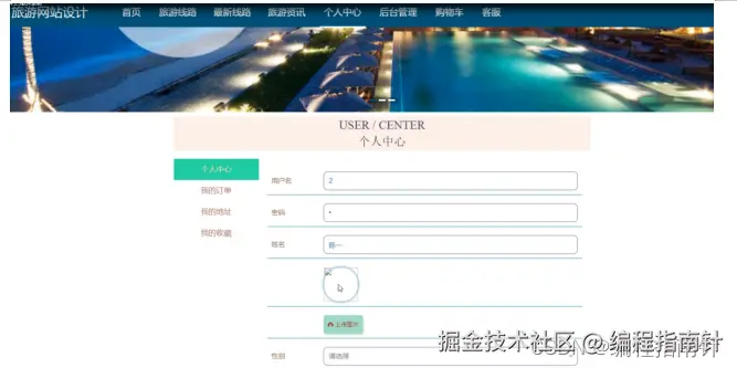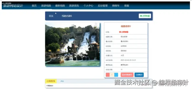 用户登录成功后,可以进行查看旅游路线、最新线路、旅游资讯、个人中心、后台管理、购物车、客服等功能模块。进行相对应操作。如图5-6所示。