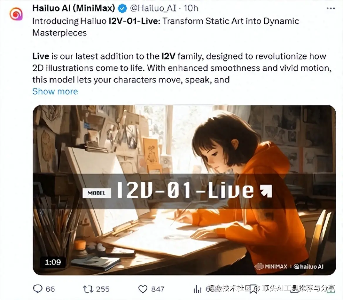 Hailuo AI近期推出的I2V-01-Live功能,正以前所未有的方式拓展数字艺术的边界。这一创新技术能够将静态的二维插画迅速转化为生动逼真的动态影像,为数字艺术领域带来了革命性的变化。