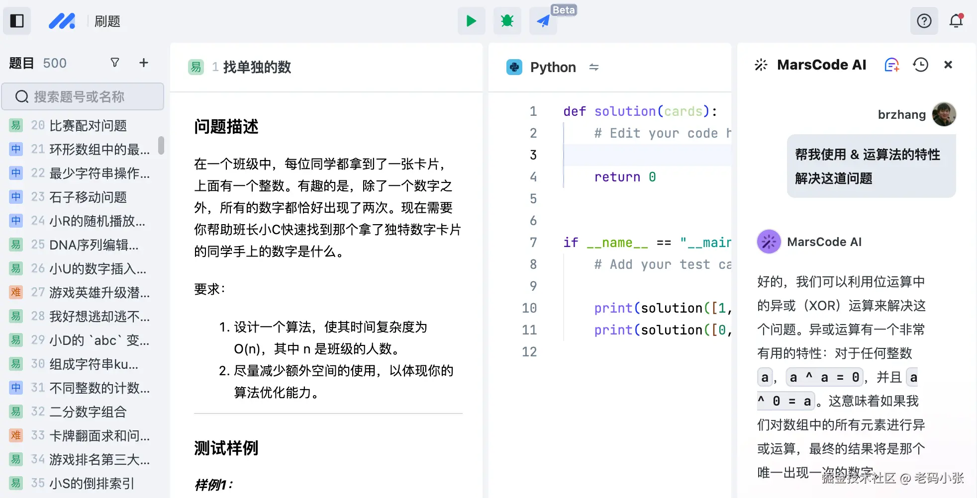 写代码练习,总少不了动手刷题。可是,面对那些杂乱无章的练习工具,有没有一种更加高效、有趣的方式?今天,我就来和大家聊聊一款刷题神器——MarsCode(代码练习版),以及如何利用它让编程学习事半功倍。