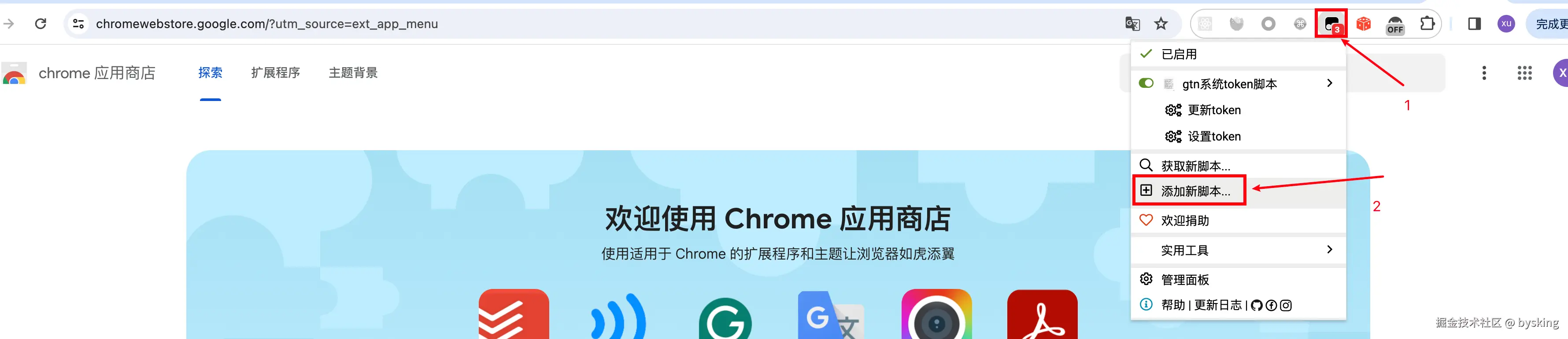 打开设置里面的拓展程序商店,地址:chromewebstore.google.com/?utm_source… 搜索"油猴",点击安装。