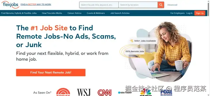 FlexJobs是一个专业的在线工作服务平台,成立于2007年,总部位于美国科罗拉多州。该平台专注于为自由职业者提供高质量的灵活兼职工作机会,所有工作都经过人工筛选和检查,确保合法性和安全性。FlexJobs以其界面整洁、无广告的特点,为用户提供良好的使用体验,对于那些希望找到正规且薪资丰厚的程序员来说,FlexJobs是一个值得信赖的选择。