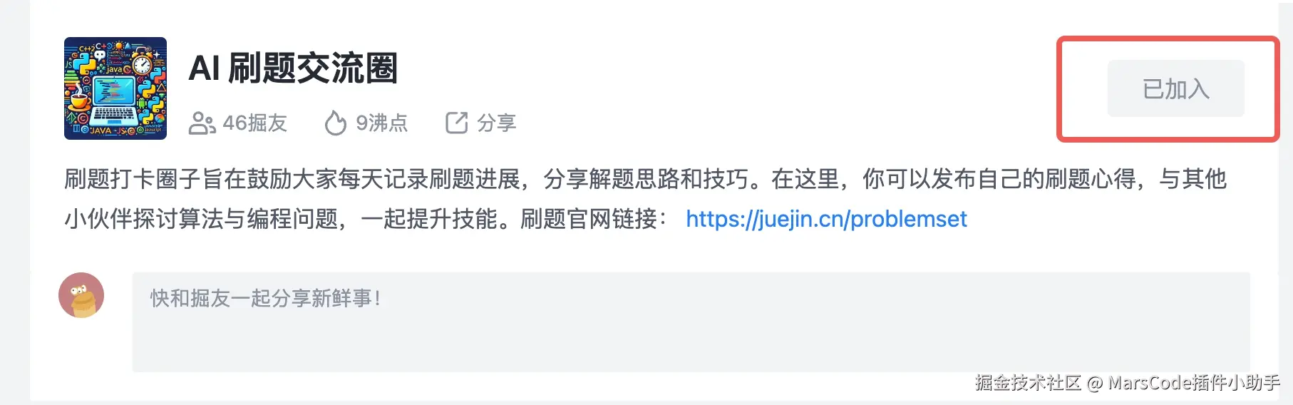 使用AI 刷题进行体验,沸点内容可以选择刷题展示、刷题计划、刷题技巧、刷题心得和收获、刷题使用与反馈等与刷题相关的内容。