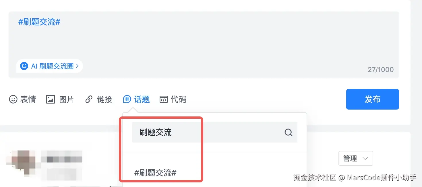 - Step 2:撰写沸点,选择 #刷题交流# tag