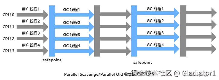 它是 Serial 收集器的多线程版本,可以使用多条线程进行垃圾回收:
