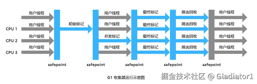 G1 收集器的运行大致可以分为以下四个步骤: