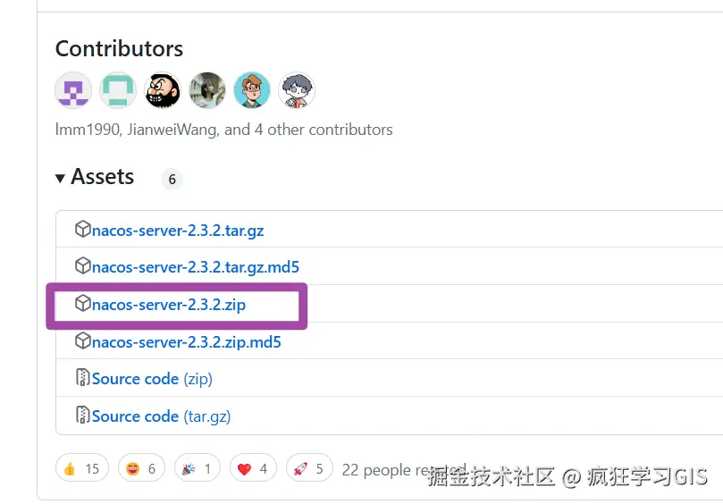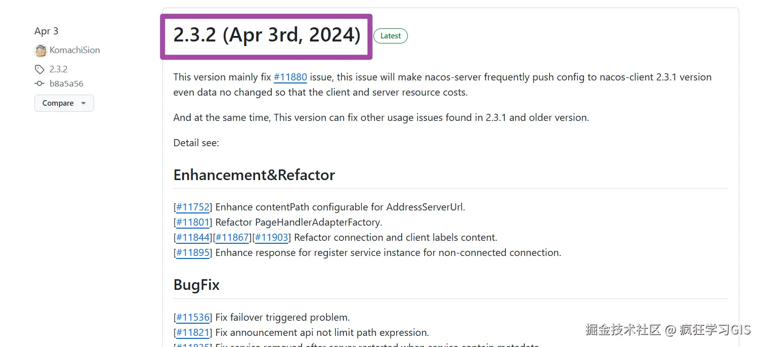接下来,我们就开始配置Nacos。首先,到其GitHub的官方网站中,下载最新的稳定版本;我这里就下载了2.3.2这个版本,如下图所示。