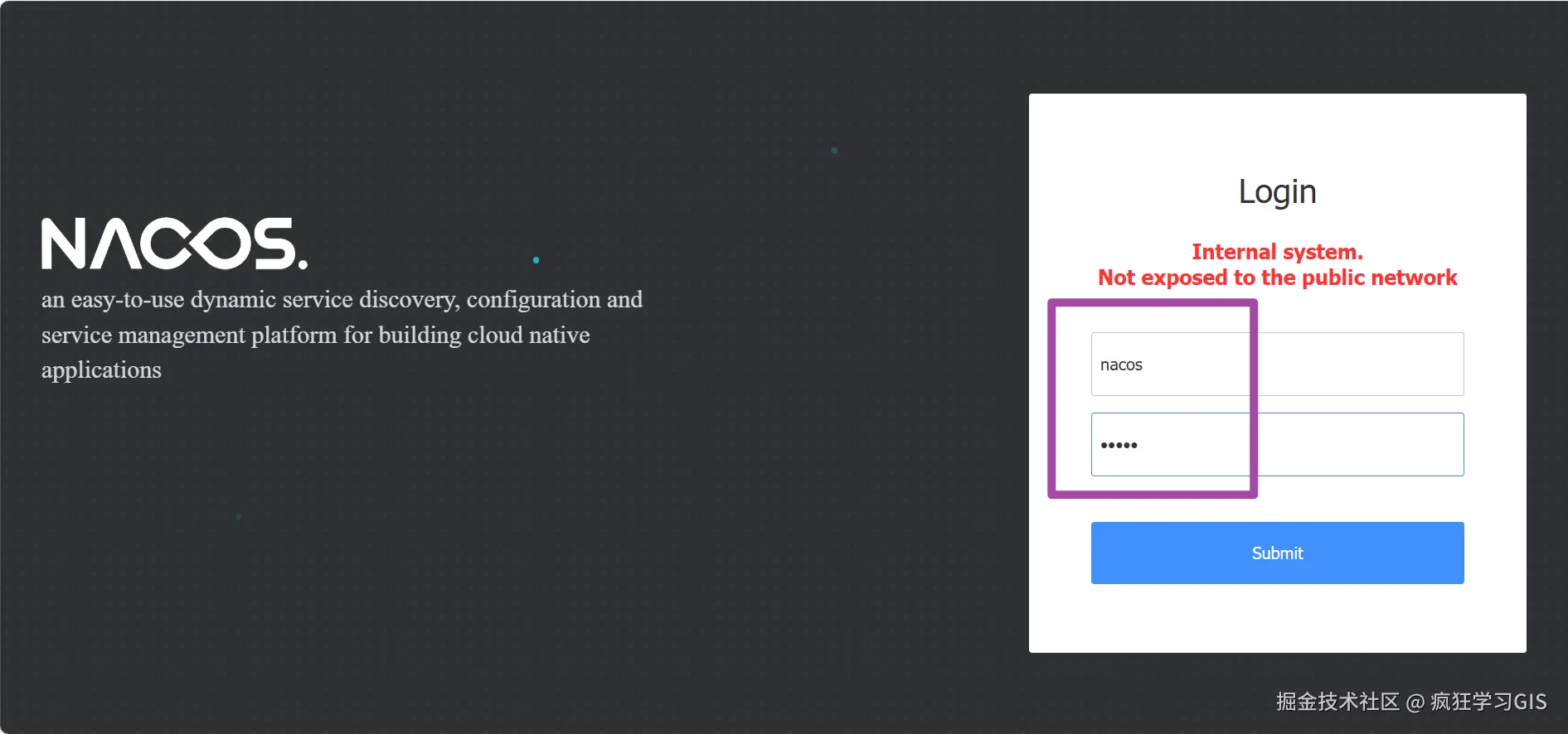 这里需要注意,默认情况下,上图中的用户名和密码都是nacos。