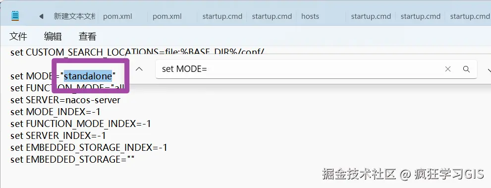 随后,搜索set MODE=这个字样,并将其引号内的字样修改为standalone,如下图所示。