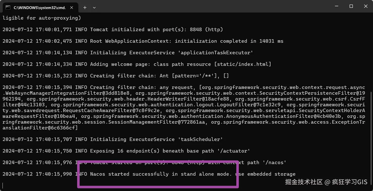 随后,双击startup.cmd文件,就可以用单机模式打开Nacos了。