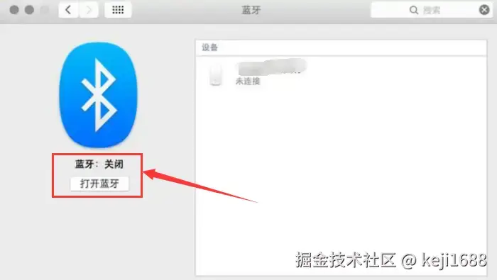 MacOS系统:点击屏幕右上角的 【蓝牙】 图标,通过 【系统偏好设置】>【蓝牙】 开启。