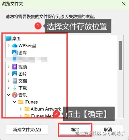 第3步: 点击【导出】后,在弹窗中选择恢复文件的另一个存储位置。