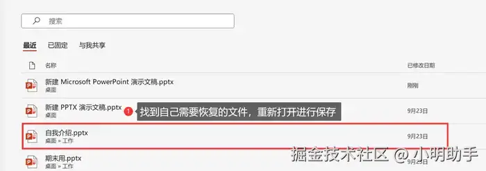 妙招一:从软件的【最近】板块中恢复未保存ppt文件