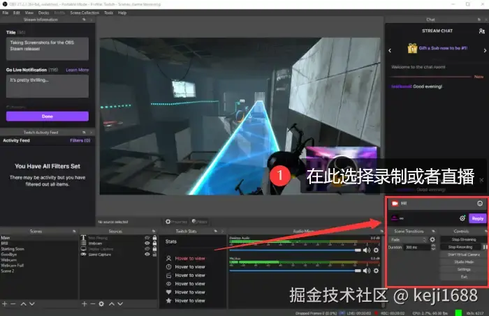 OBS Studio是一款开源视频录制和直播软件,提供了丰富的输出选项,满足专业用户的需求。它具备实时推流功能,可将录制内容直接发送到各大直播平台。打开软件后,可以自由选择录制或直播功能进行操作。