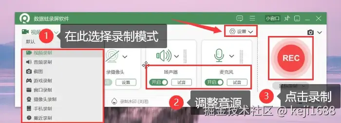 该软件支持多种录制模式,如游戏、窗口、摄像头录制模式等。且内置音频分离功能,方便后期编辑。可以进行多种高清质量的录制,也支持多种输出格式。录制完成后还提供了简单的视频剪辑功能,如分段视频、剪辑、添加特效等。 下面就是软件的录屏步骤: