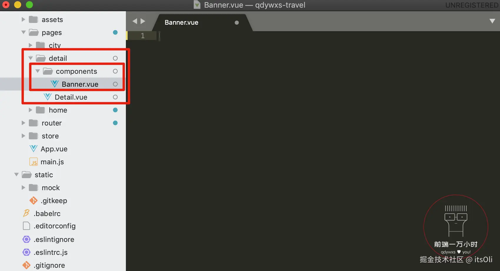 2️⃣在 detail 文件夹中新建一个 components 文件夹,并新建 Banner 组件 Banner.vue :