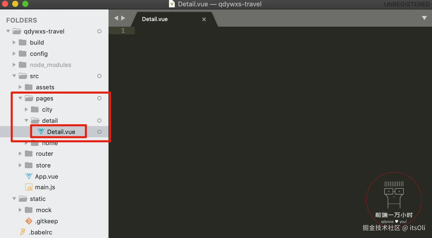 1️⃣-②:在 detail 文件夹中新建详情页组件 Detail.vue ;