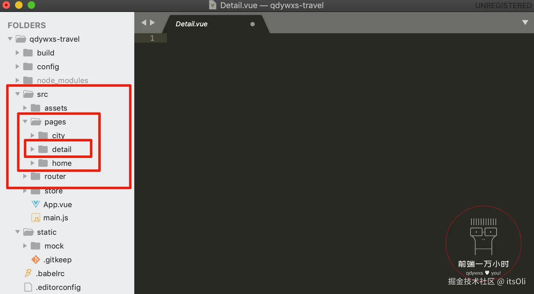 1️⃣-①:在 src 下的 pages 中新建 detail 文件夹;