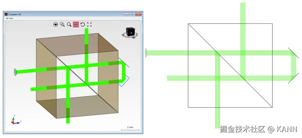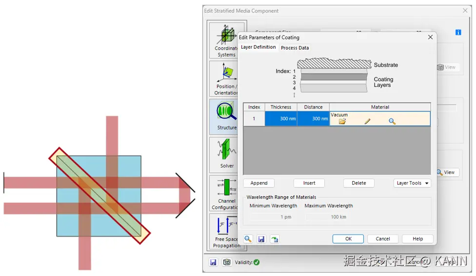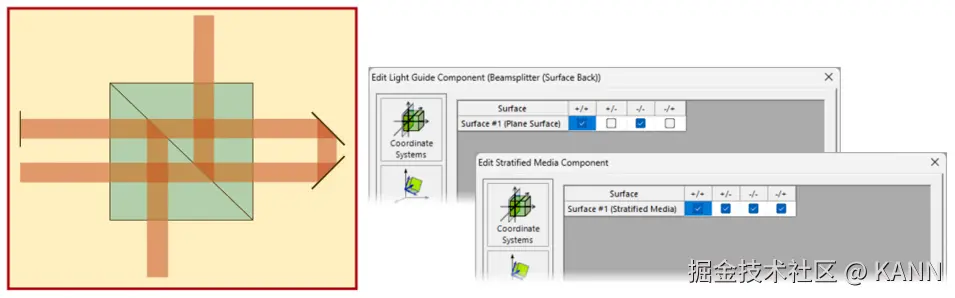 摘要** ** 在光谱分析、干涉测量和光通信领域的许多应用中,分束器设备都发挥着至关重要的作用。一种常见的分束器是基于受抑全内反射(FTIR):设置第一个玻璃棱镜是为了让入射光线在全内反射条件下照射到其中一个表面,第二个棱镜直接置于其后面,这样两个棱镜之间就只有一层非常薄的密度较低的材料(例如空气)。 如果分隔层足够薄,则全内反射至少会被穿过狭缝的倏逝波部分抑制,从而实现入射能量在分束器两个输出端之间的重新分配。 建模任务** 连接建模技术:亚波长狭缝 与表面相互作用的现有建模技术: 由于穿过狭缝的倏逝波是这种光路的基础,因此需要选择一种将其考虑在内的建模技术。我们选择了严格的 S 矩阵/层矩阵算法(专门针对 x、y 不变的层状结构开发,完美地描述了本系统中的狭缝)。 受抑的全内反射 (FTIR) 棱镜之间的间隙由分层介质组件(Stratified Media Component)建模。虽然其设计初衷是模拟具有多个不同层的系统,但底层的 S-Matrix 求解器也能对单个狭隙进行严格建模。有关分层介质组件(Stratified Media Component)的更多信息,请点击此处:分层介质组件 层矩阵求解器分层介质组件(Stratified Media Component)使用层矩阵电磁场求解器。该求解器在空间频域中(k 域)工作。它包括:1.每个均质层的特征模式求解器;2.用于匹配所有界面边界条件的S矩阵。 特征模式求解器计算 k 域中各层均质介质的场解。S 矩阵算法通过以递归方式匹配边界条件来计算整个层系统的响应。这是一种以无条件数值稳定性而闻名的方法,因为与传统的传输矩阵不同,它避免了计算步骤中的指数增长函数。 更多信息:层矩阵[S-矩阵] 非序列追迹 ** 将通道配置模式设置为手动(Manual Configuration)后,用户可以为系统中的每个表面单独指定模拟时所遵循的光路。进行模拟时,光路查找器(Light Path Finder)将确定可用的光路。然后通过配置好的选项沿着这些光路进行场追迹。非序列追迹的通道设置 系统概述(光线结果配置文件:系统 3D) 狭缝厚度分析 基于FTIR的立方体分束器的反射率和透射率之比与棱镜之间的狭缝厚度密切相关。在本示例中,我们研究了狭缝在0 nm至500 nm厚度范围内产生的影响。我们将 VirtualLab Fusion 获得的结果与已发表的参考文献进行了比较:参考文献:Chang Chien et al. “Design Analysis of a Beam Splitter Based on the Frustrated Total Internal Reflection”, Prog. Electromagn. Res., Vol. 124, 71-83, 2012. 文件信息 拓展阅读 - 分层介质组件 - 非序列追迹的通道设置 - 激光迈克尔逊干涉仪和干涉条纹探测 - 马赫-曾德干涉仪 |