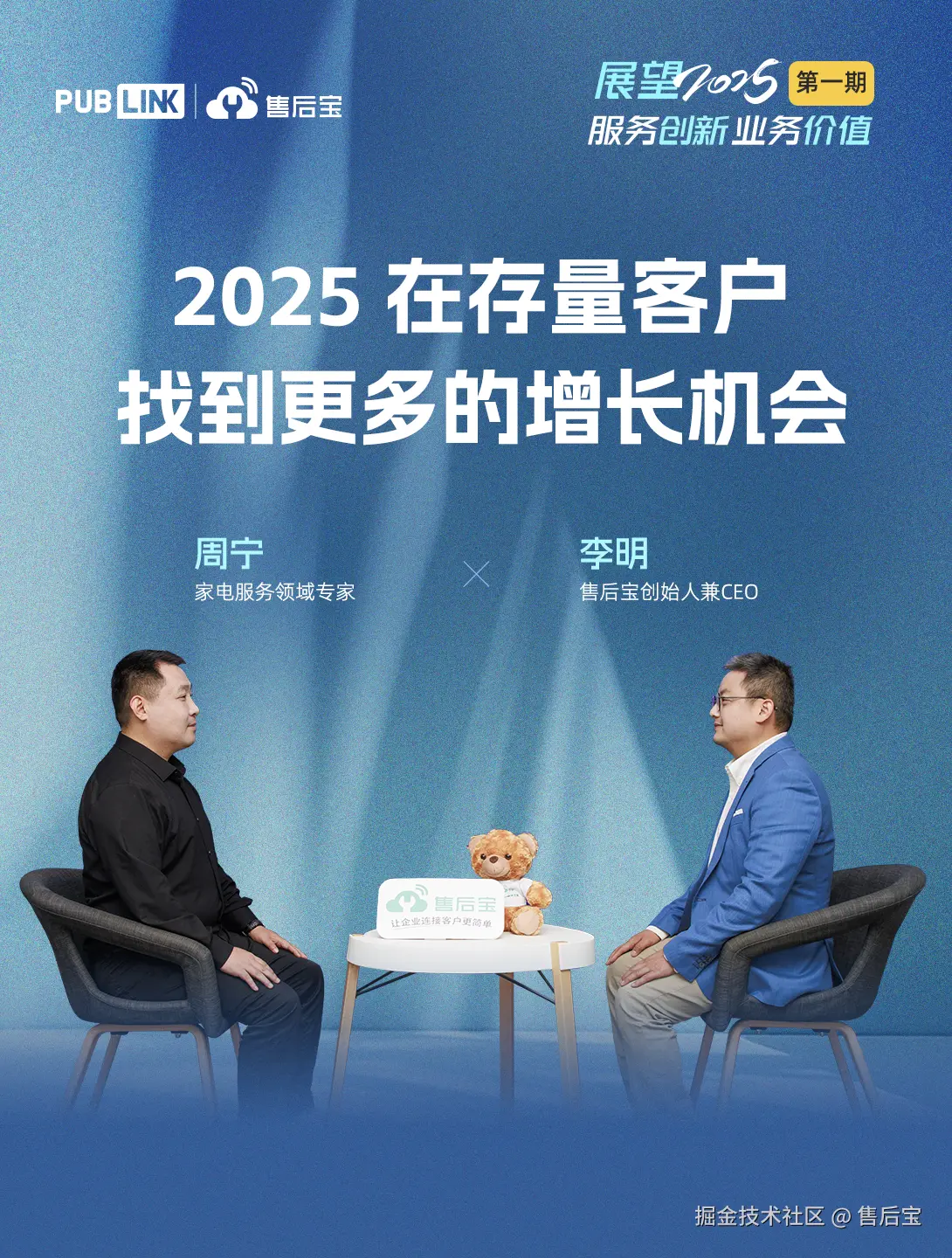 首期直播将于12月6日(本周五)15:30,在售后宝客服云视频号直播间正式开启,我们邀请到家电服务领域专家周宁,与售后宝创始人兼CEO李明共同探讨如何在存量客户找到更多的增长机会。