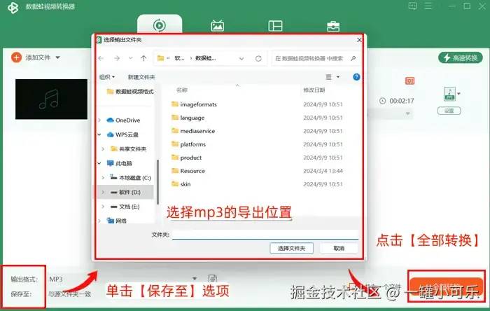 第三步:返回wav转mp3界面中,单击【保存至】选项,选择mp3的导出位置,然后点击【全部转换】。