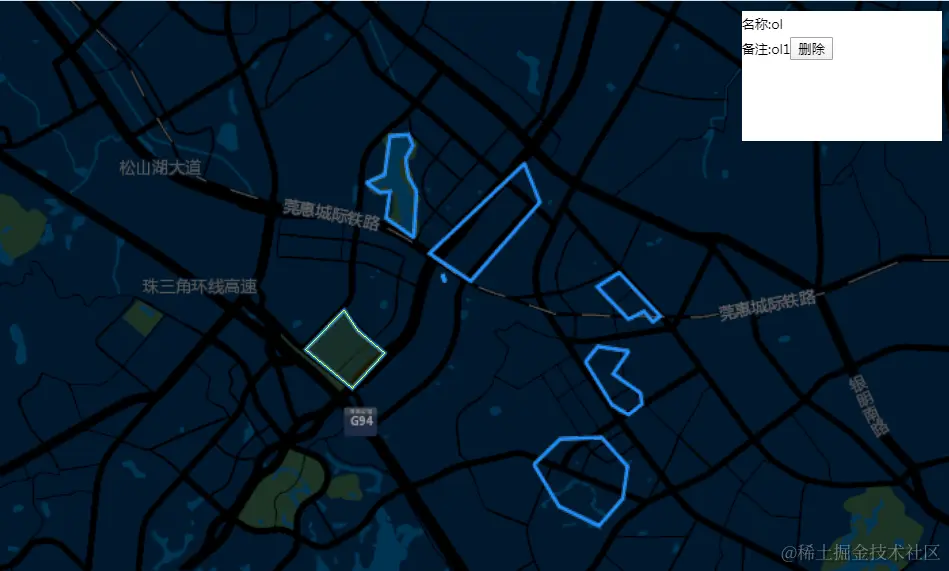 备注:'+properties.holder_nam+'删除'; ("#infowindow").show(); ("#infowindow").empty(); ("#infowindow").append(content); ("#deleteBtn").click(function(){ //console.log('删除按钮点击事件'); if(id) { deleteLayerRecord(id,callbackDeleteLayersWFSService); } }); } else{ clearMap(); $("#infowindow").hide(); } }