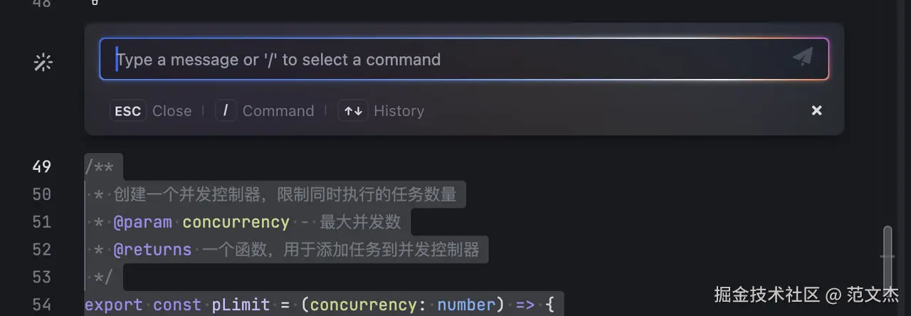 与 VS Code 比较大的差异在于,在 Web IDE 中使用 ctrl + i 快捷键可打开行内交互面板: