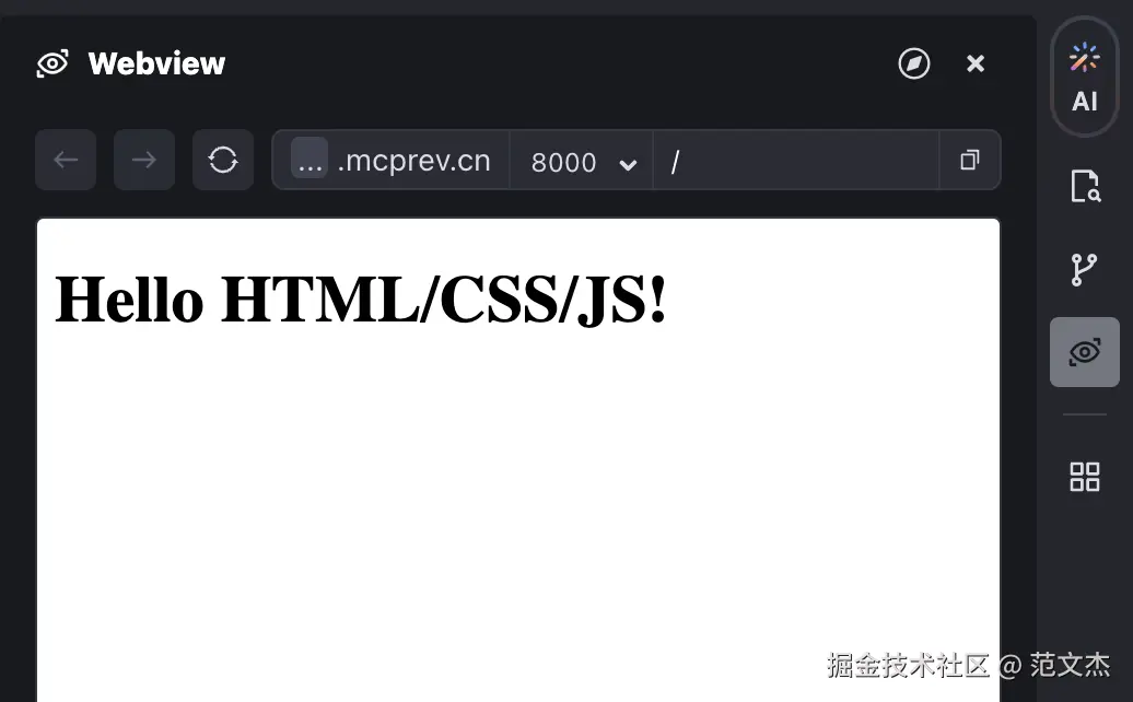 Webview 是个亮点,豆包MarsCode 本质上是 cloud ide,因此terminal 中启动的各类应用都不在本地执行,而是挂靠在 cloud 环境中,因此无法使用