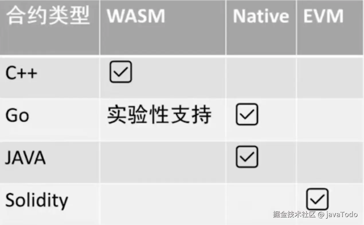 合约语言/运行时相容矩阵: