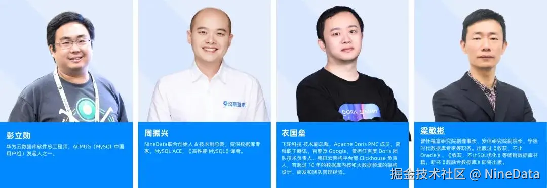 本次大赛的评委,均是数据库领域的领军人物,通过主办方NineData的邀请,组成2024年第二届《数据库SQL编程大赛》强大的评审嘉宾团。