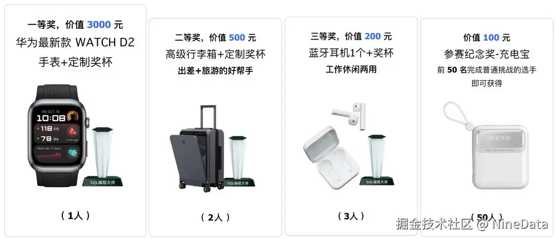 数据库编程大赛奖品,欢迎来挑战!