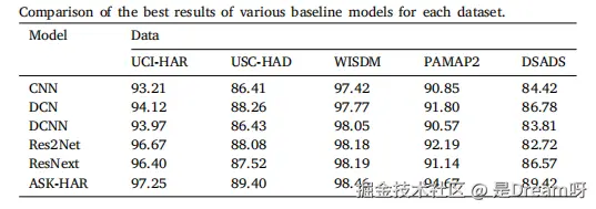 在评估模型时,选择了五个公共的HAR数据集,包括UCI-HAR、USC-HAD、WISDM、PAMAP2和DSADS。这些数据集包含了从不同传感器和不同场景下收集的活动数据,提供了一个全面的测试平台。通过与现有方法和基线模型的广泛比较,证明了ASK-HAR模型在所有数据集上都能实现高精度的识别结果。