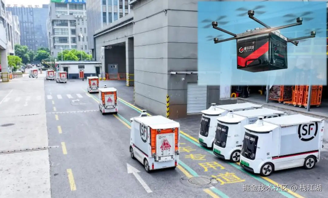 2023年顺丰推出了无人快递车,实现智能快递,同时在空中也有无人机进行快递配送。每台无人车均实现自主导航,日均可以实现500~1000件的运输效率。