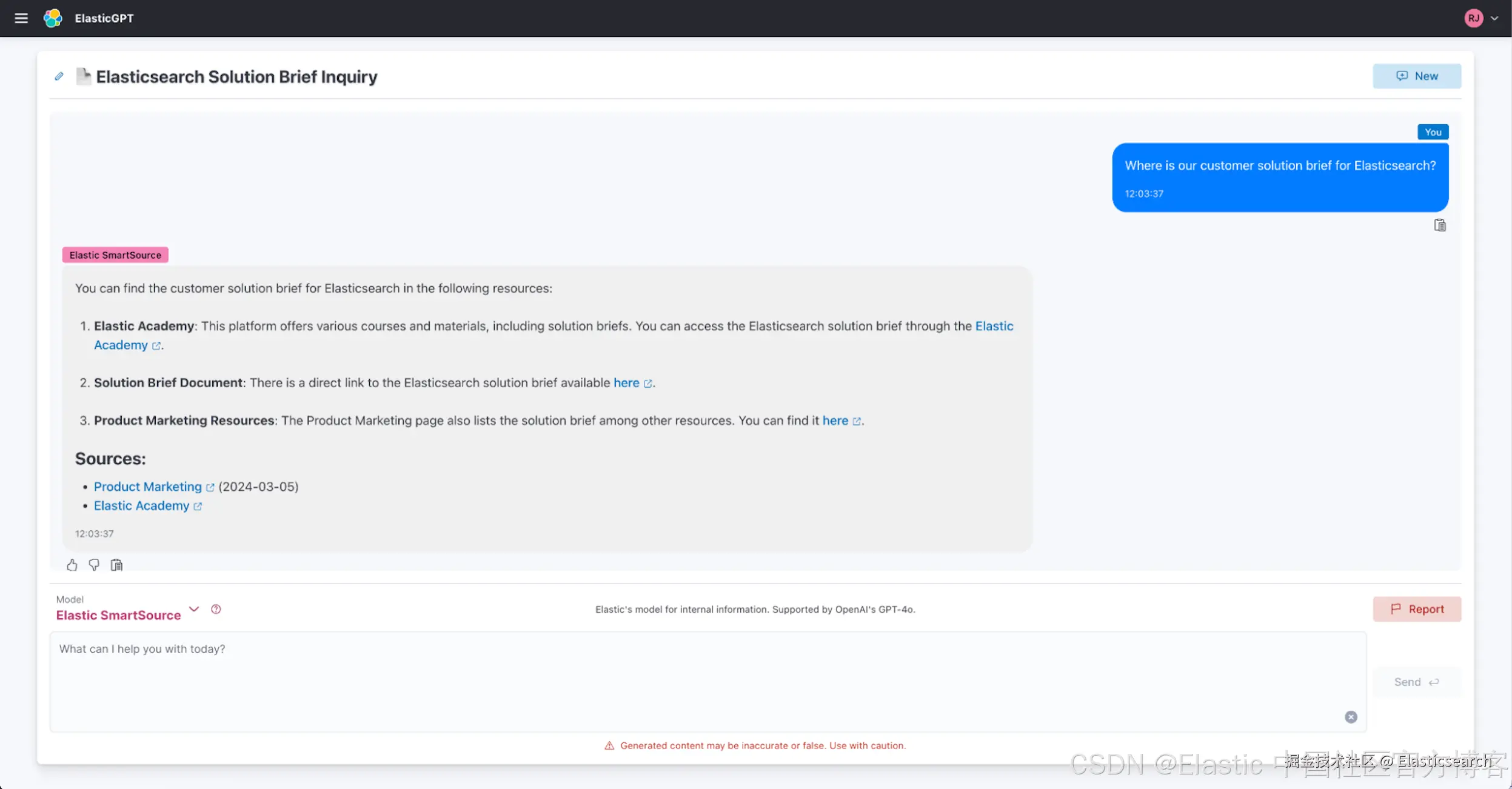 在营销团队工作期间,我开始在编写内容时使用 ElasticGPT 来验证特定产品功能的技术能力。