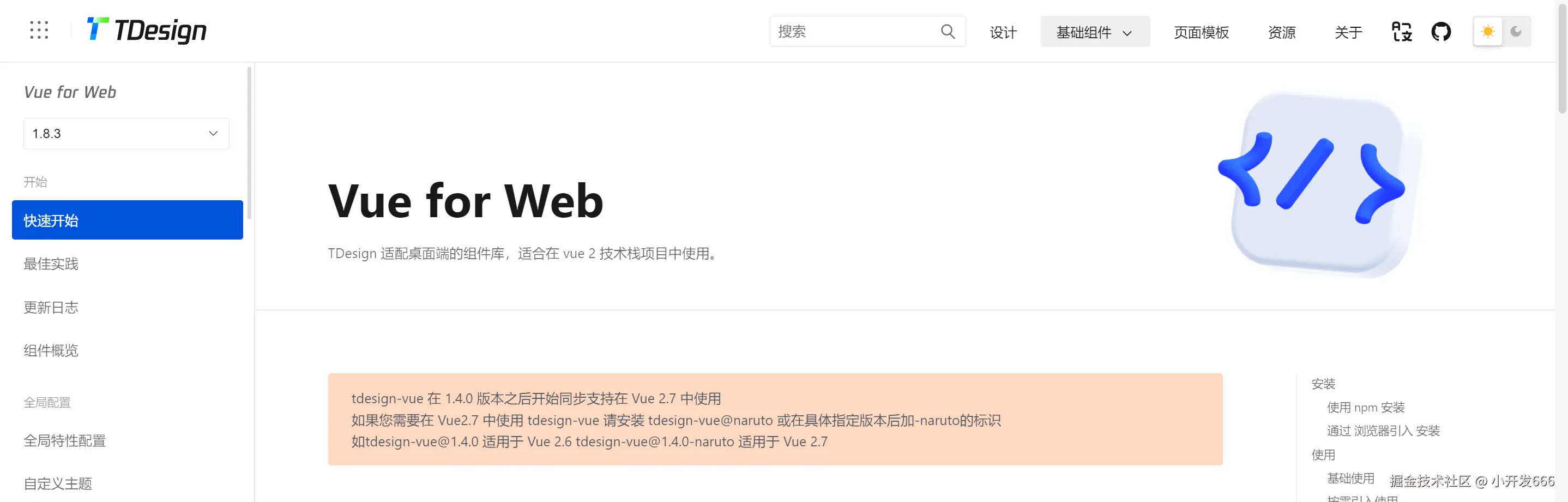 tdesign-vue组件在Vue2.7下使用,版本后需要加上-naruto。