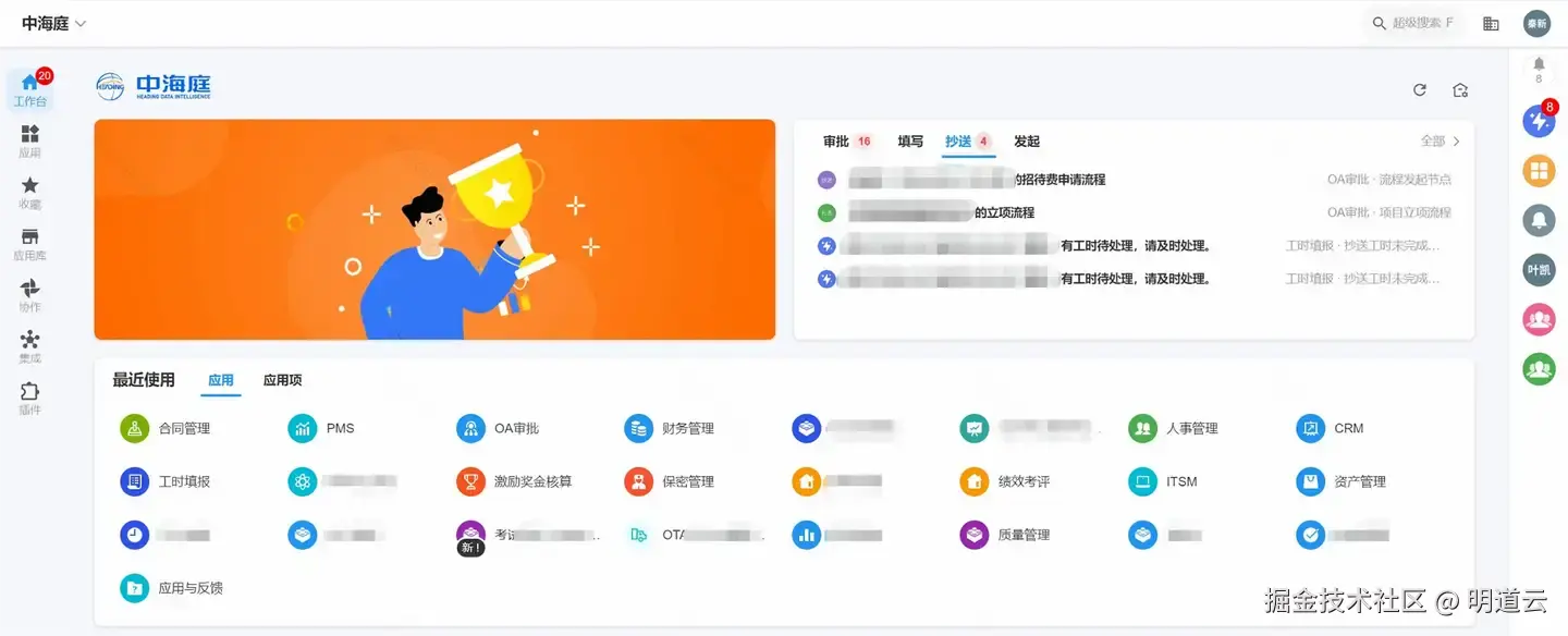 为了提升信息化集成度,消除信息孤岛,中海庭寻求通过低代码平台搭建信息化底座,推动信息流的闭环管理,降低成本,提升效率,并为精准决策提供数据支持,助力企业做强做大。