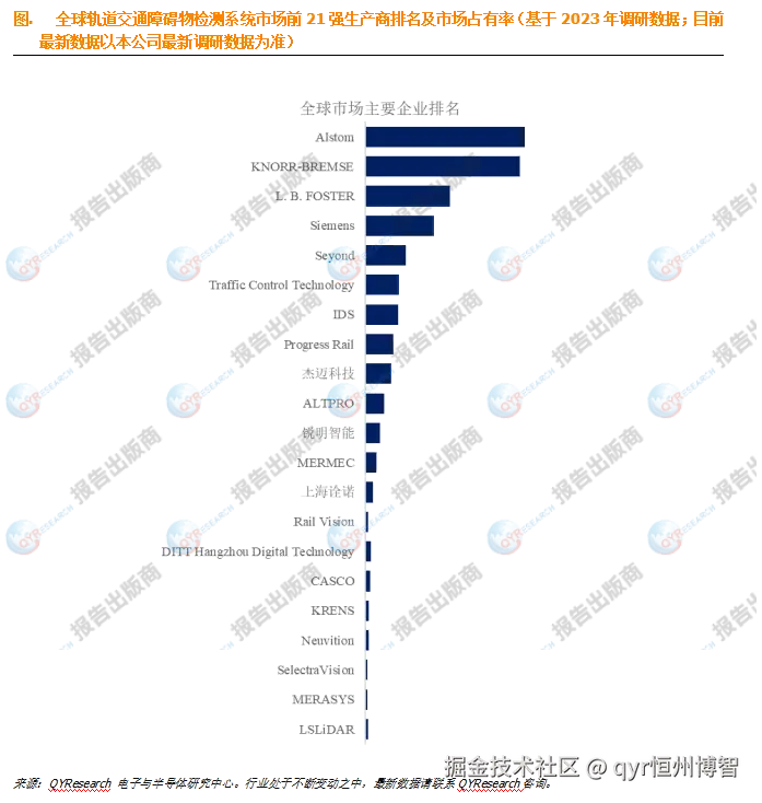 据QYResearch调研团队最新报告“全球轨道交通障碍物检测系统市场报告2024-2030”显示,预计2030年全球轨道交通障碍物检测系统市场规模将达到11.6亿美元,未来几年年复合增长率CAGR为11.7%。