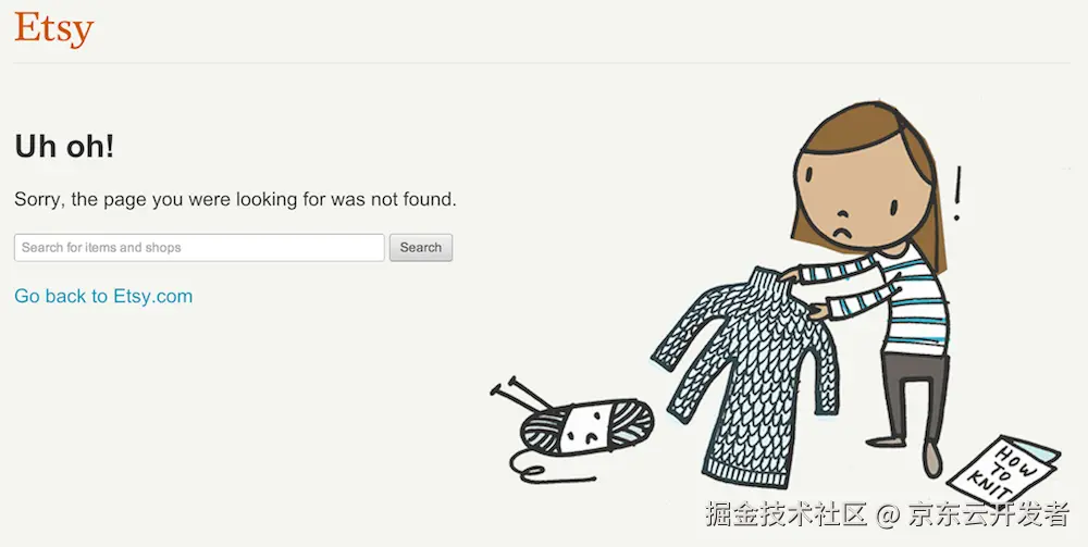 你可能不知道的是,一家在线电子商务公司,每日浏览频率最高的单体页面,其实就是网站不可用页面,也就是习惯上的502页面。当Etsy的网站不可用的时候,你看到的是一个小姑娘在织毛衣的画面,而这个毛衣竟然有三只袖子。