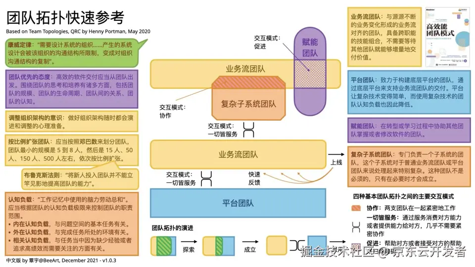 报告多次引用的《高效能团队模式》一书的内容,描述DevOps所倡导的组织架构,通过清晰定义的组织模式和交互模式,从而减少不必要的团队沟通协作。而在亚马逊的文化中同样倡导Two pizza模式,也就是将团队规模控制在两张披萨能吃饱的水平,从而降低网状沟通所带来的成本。