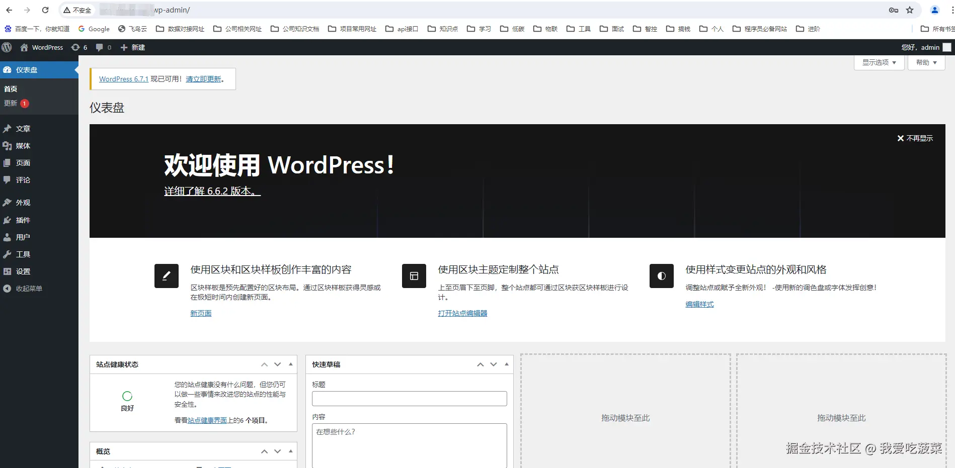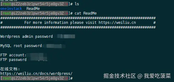 接下来,我们要开始创建自己的博客系统了。我们远程链接到ecs服务器,查看wordpress相关信息。在浏览器上出入 域名/admin ,输入刚才看到的密码,进入博客的后台管理了,后续博客系统的管理可以在这里管理。