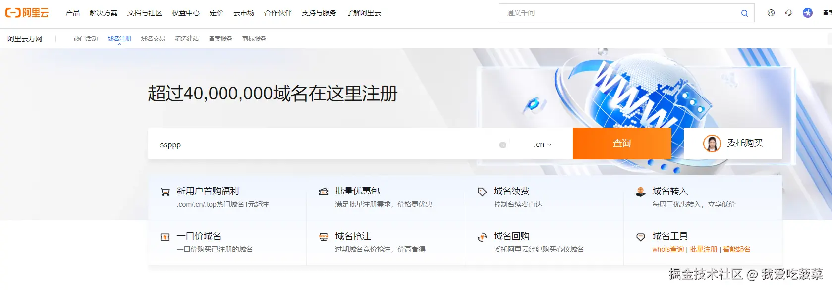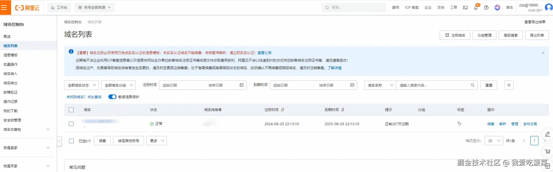 接下来,我们需要购买一个域名(如果对网站没有域名访问需求的可以跳过此步骤),前往阿里云域名产品选取一个域名,并点击注册购买。这里有一点可能要注意,购买完域名需要备案,现在都是线上申请,阿里云会将你的信息提交到工信部备案,备案时间可能会稍长一些。 域名产品传送门