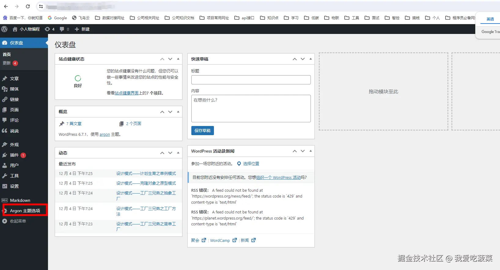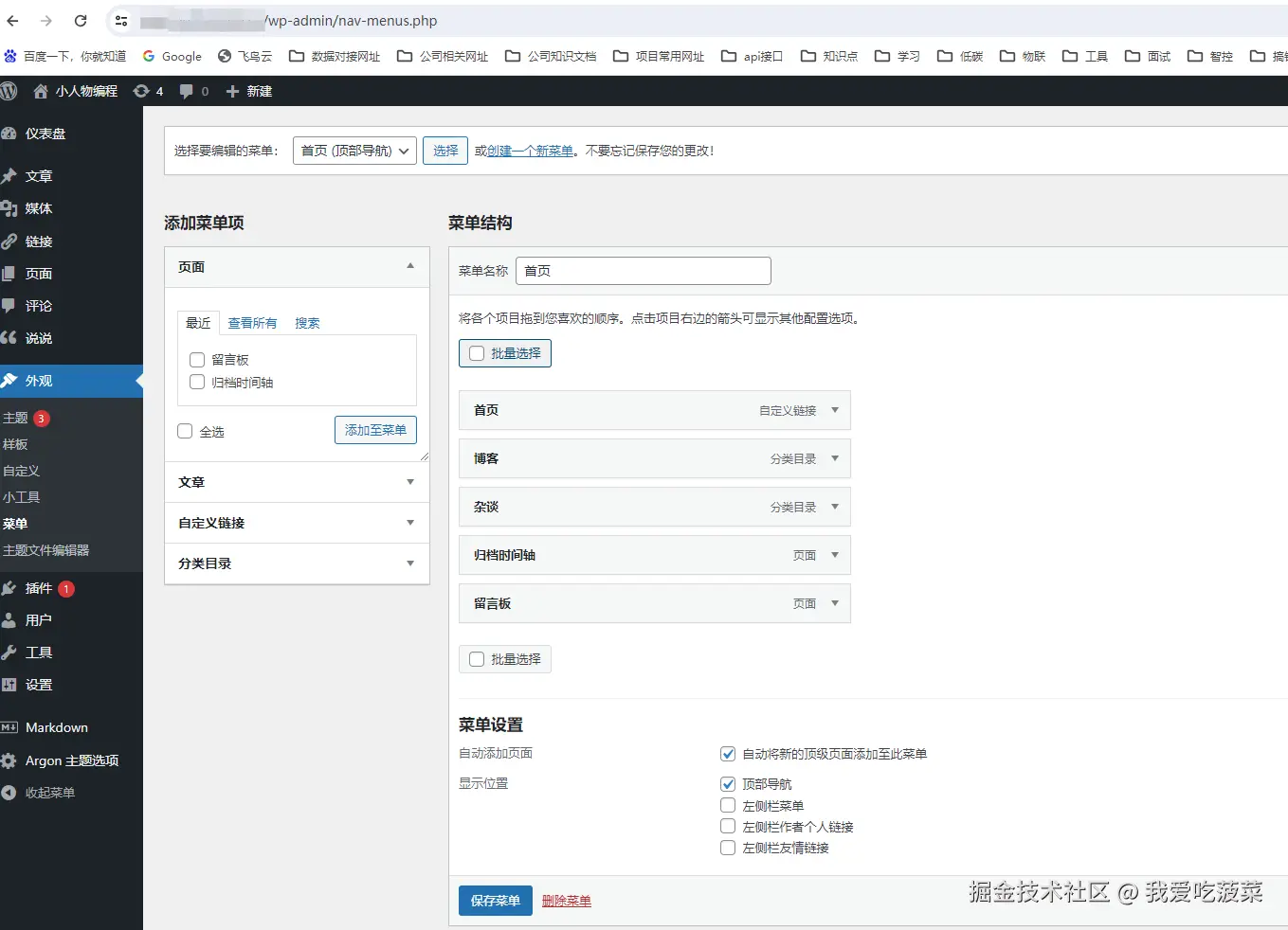 安装后,就有argon设置菜单选项,就可以配置自己的主题选项了。