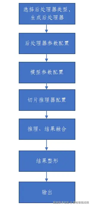 运行时先生成某一类型的后处理器,配置后处理器参数;再生成推理器,配置推理器参数及后处理器;最后使用推理器进行预测输出。