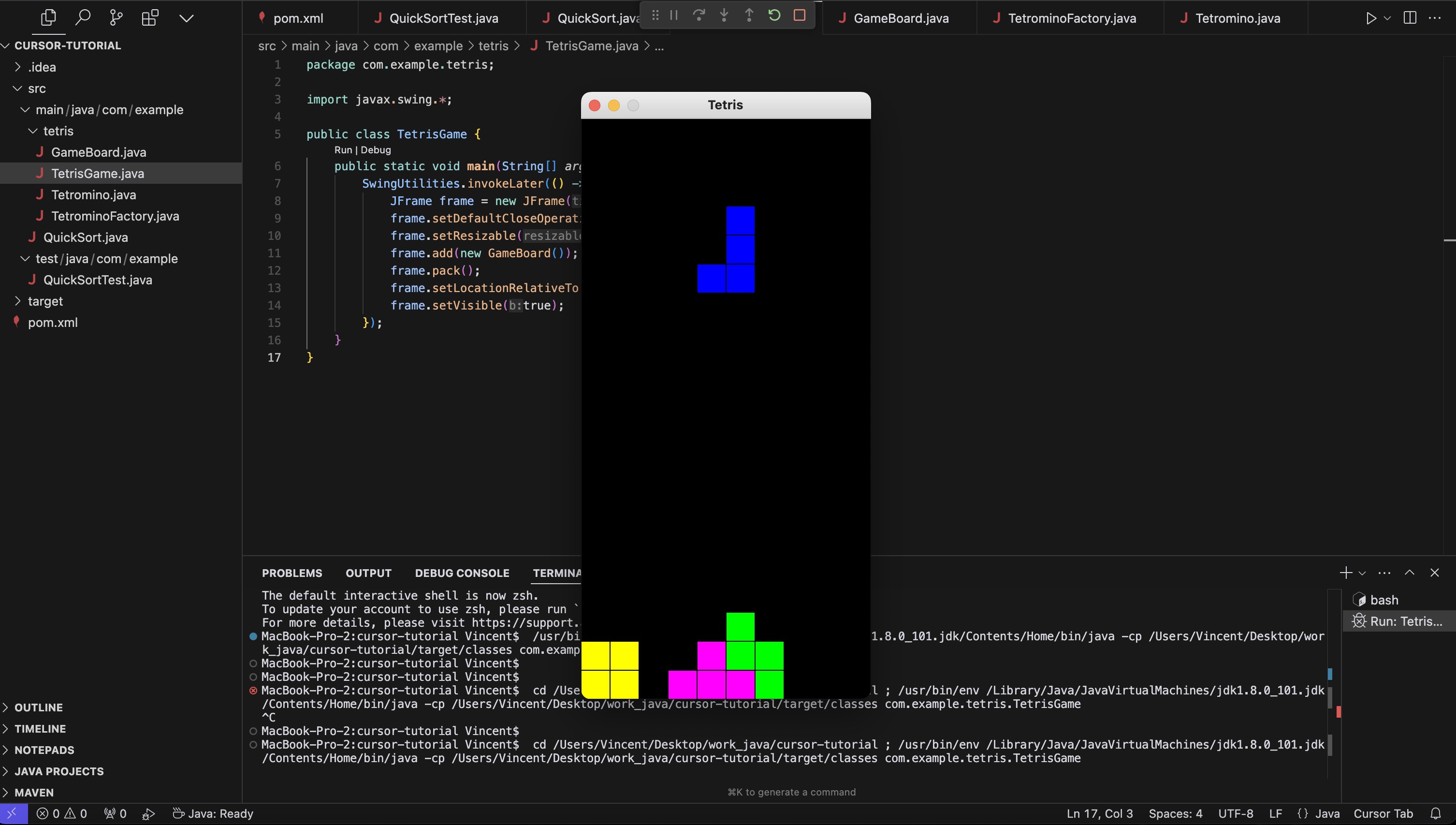 - Cursor 仅花费1分钟的时间,就帮助我完成了一个功能完整的俄罗斯方块游戏。