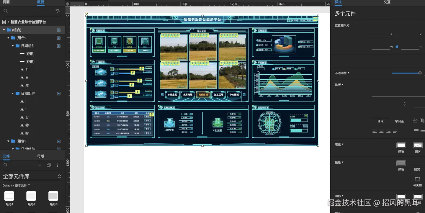 智慧农场可视化大屏系统作为智慧农业的重要组成部分,正逐步成为农场管理、决策和展示的核心工具。Axure RP作为一款强大的原型设计工具,在智慧农场可视化大屏系统的设计过程中发挥着至关重要的作用。通过Axure RP,设计师可以快速构建出高度仿真、细节精致的产品原型,为后续的开发和实施提供坚实的基础。